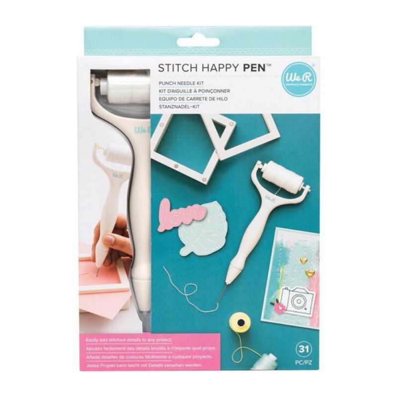 ¡El kit de Stitch Happy Pen Collection de We R Memory Keepers facilitará el bordado en papel! El juego incluye 30 piezas (una aguja perforadora, un marco magnético, 2 enhebradores, 20 adhesivos de respaldo y 6 plantillas).