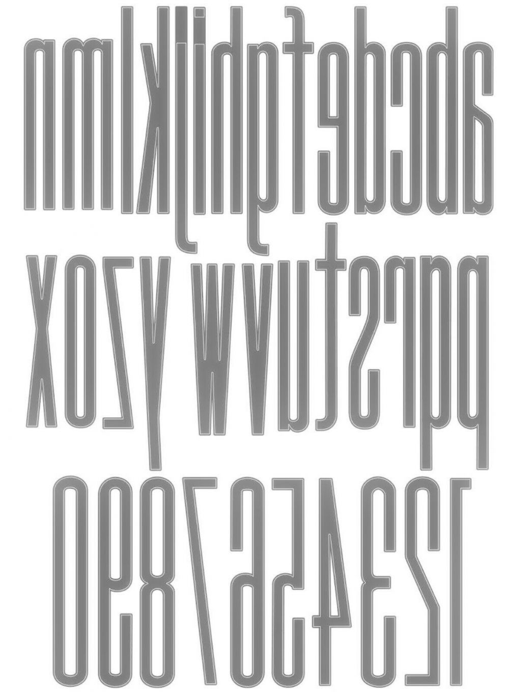 Troquel de abecedario alargado en minúsculas y numéricos cuenta con: