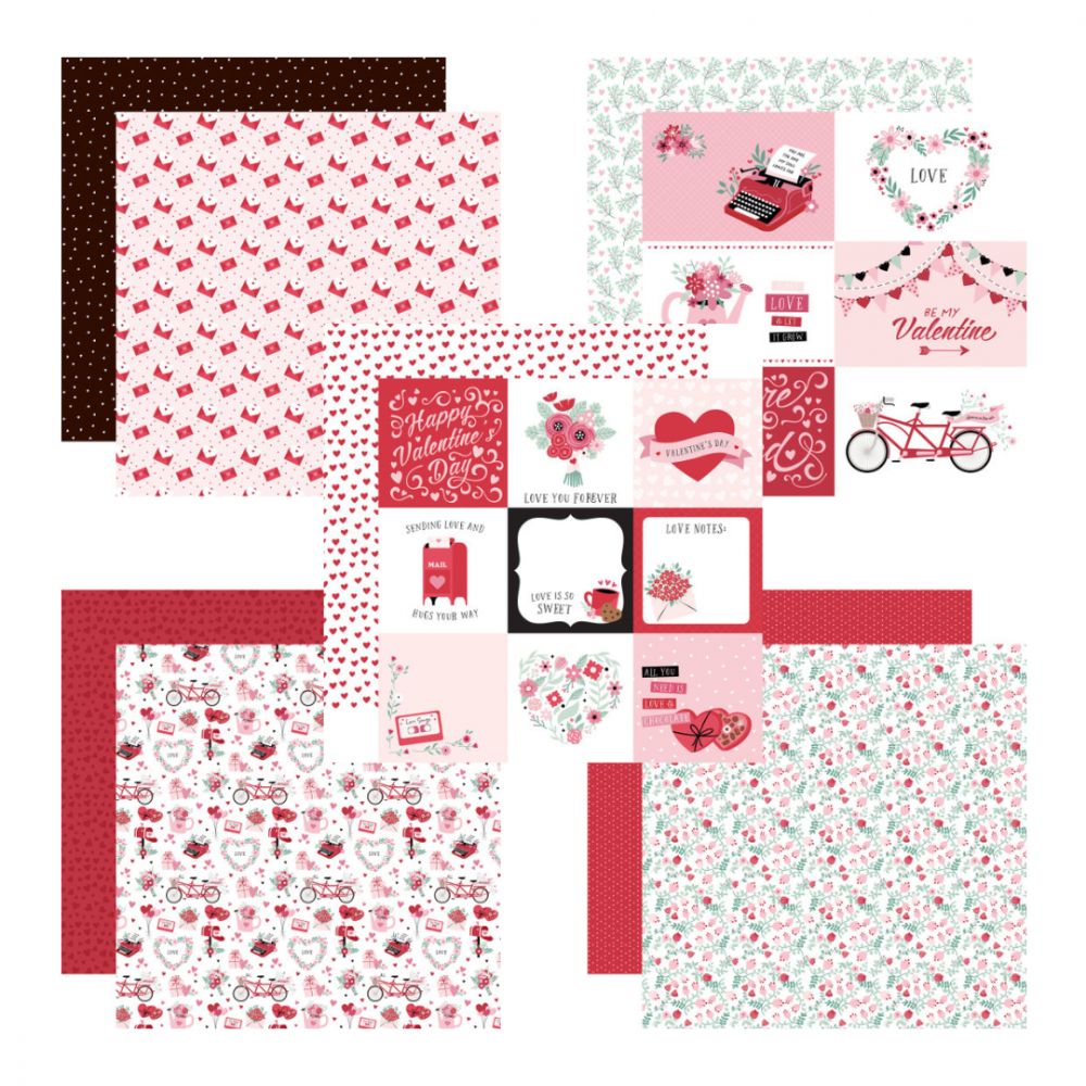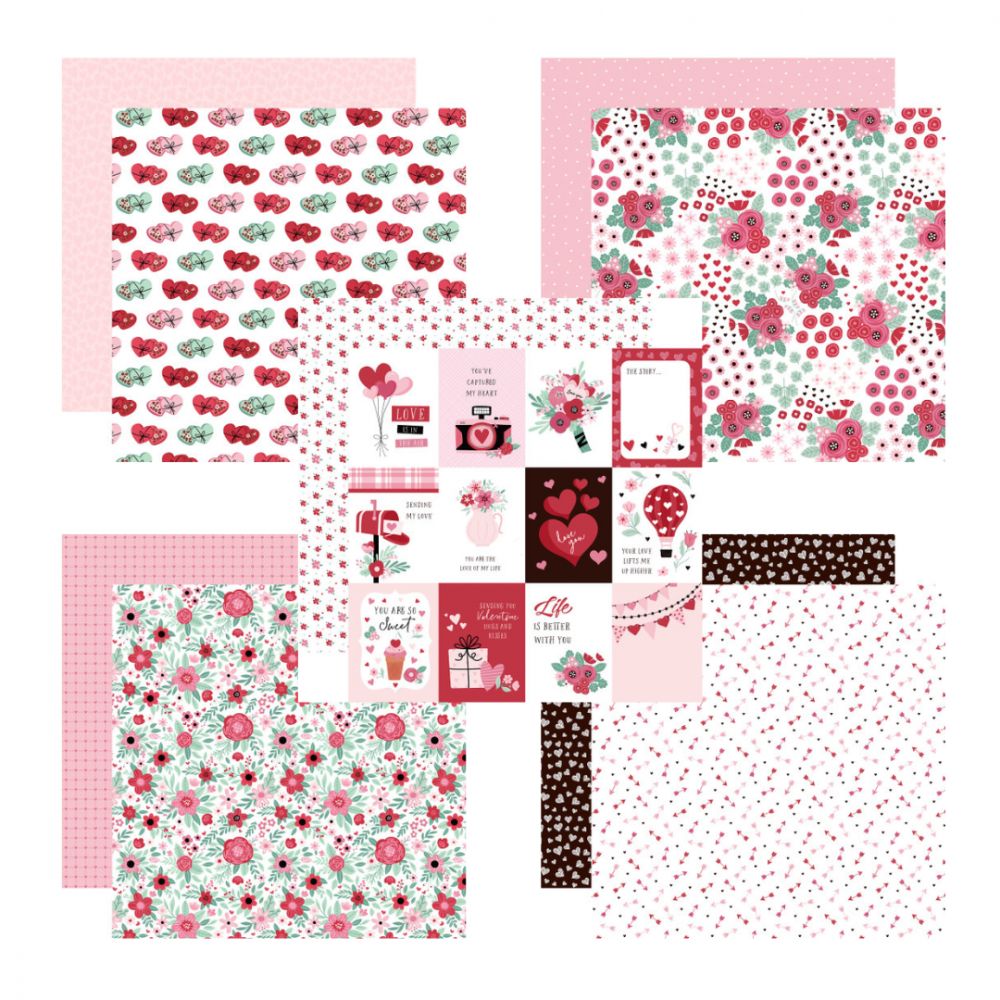 Doce papeles de doble cara de 12" x 12" que presentan diseños únicos en cada lado.