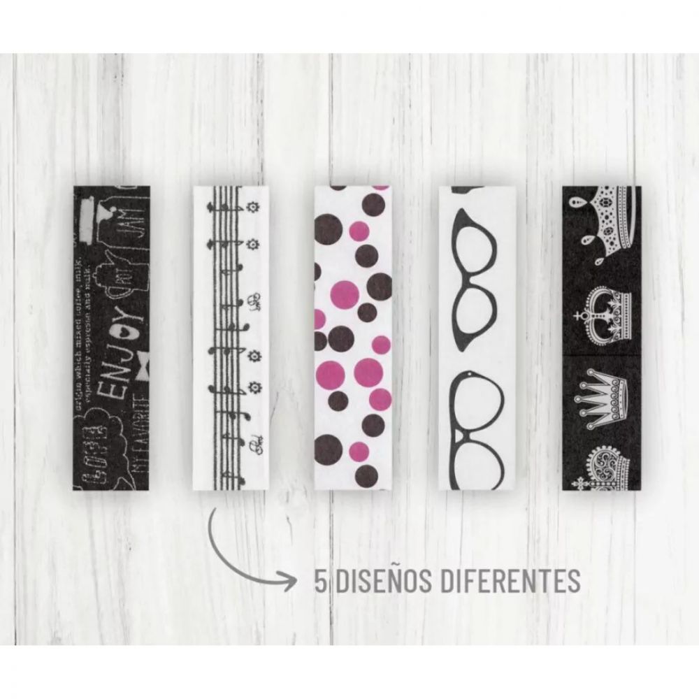 - Presentacion: caja con 5 rollos de washi tapes de diferentes diseños.