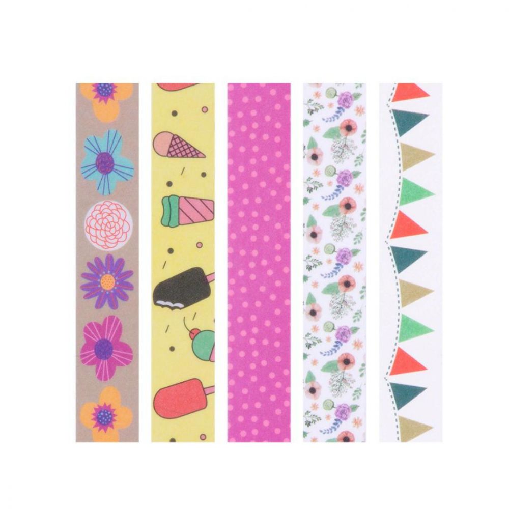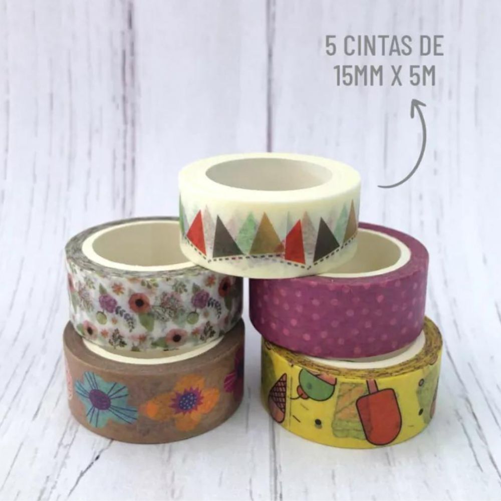 - Presentacion: caja con 5 rollos de washi tapes de diferentes diseños.