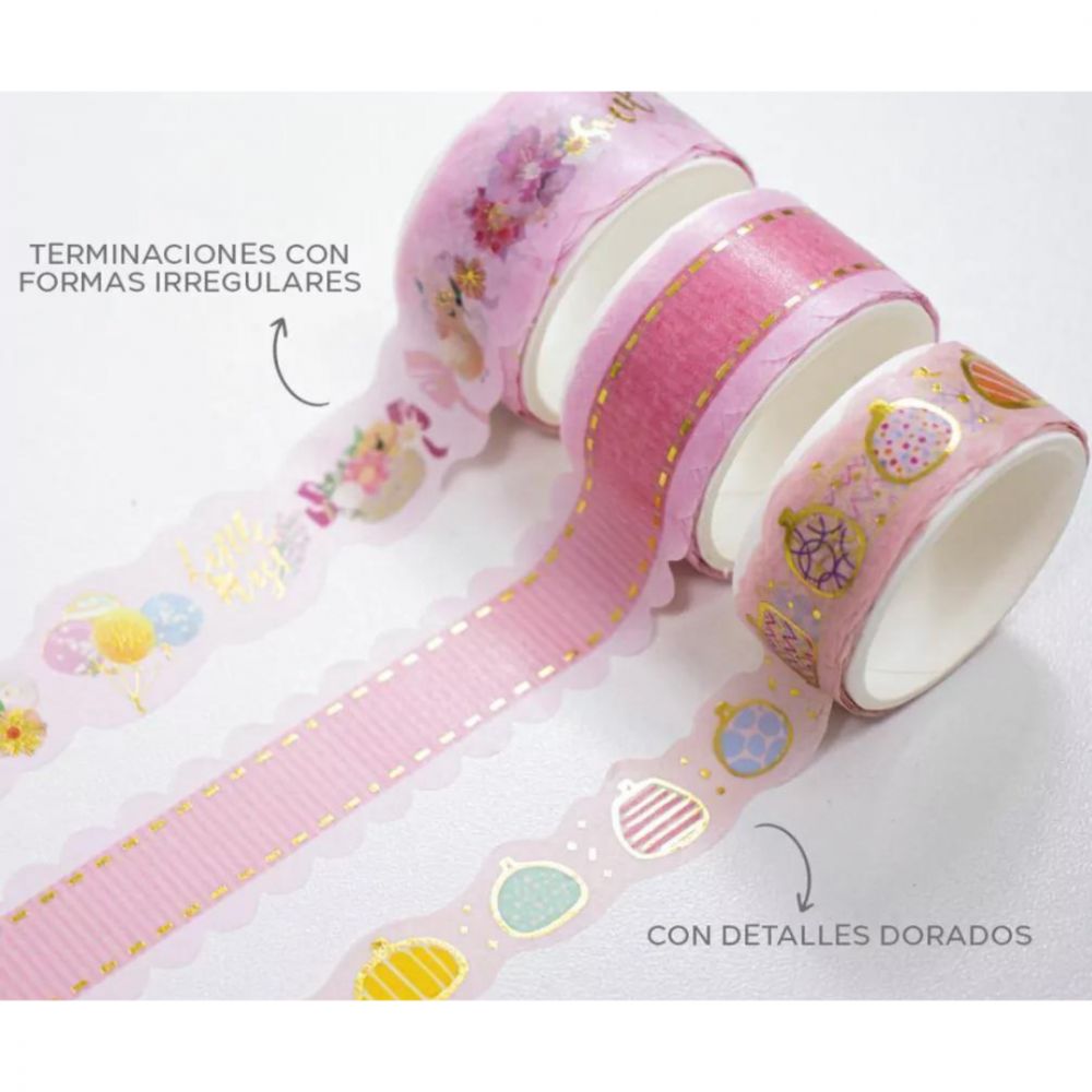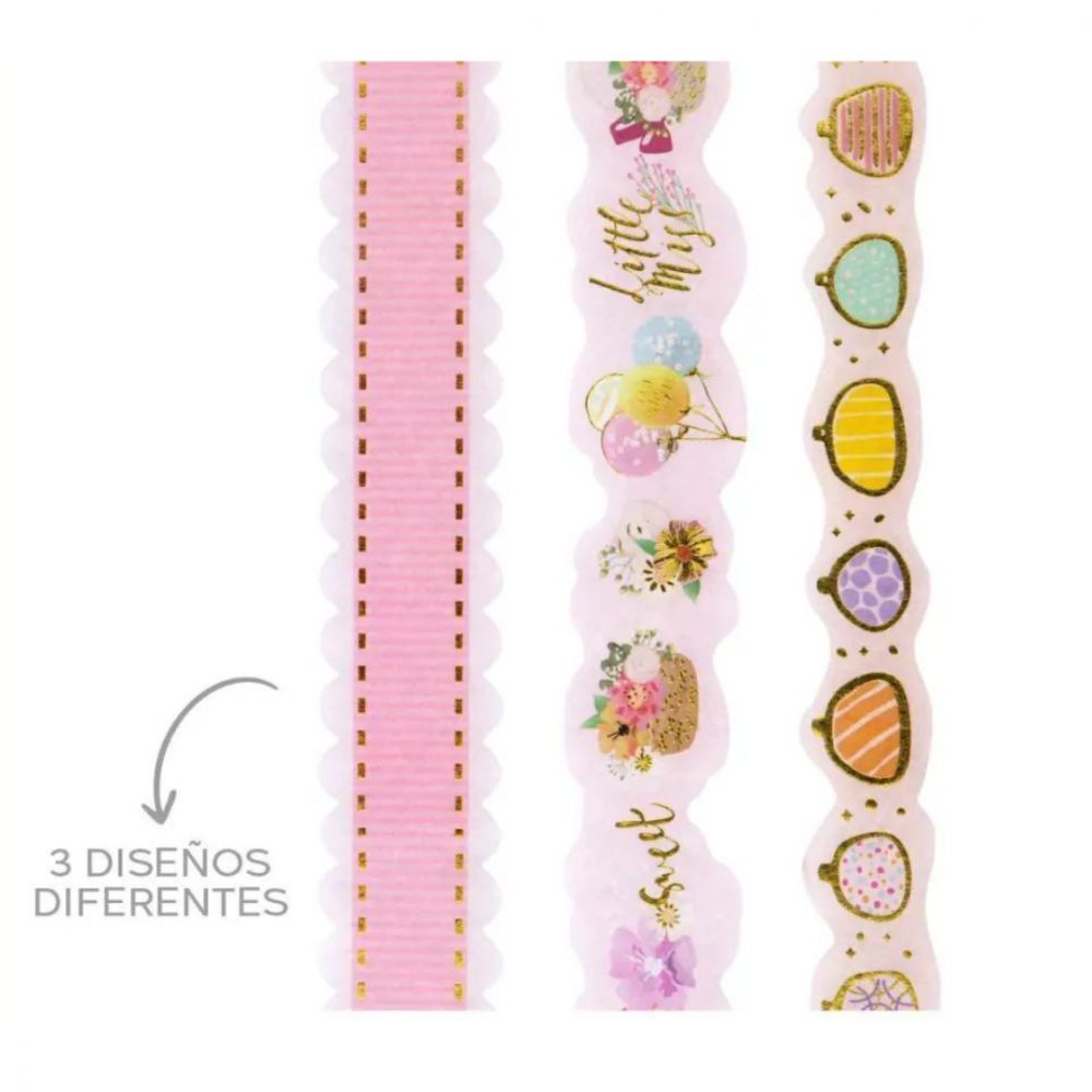 Washi Tape Rosa Cristal Troqueladas Blister X3